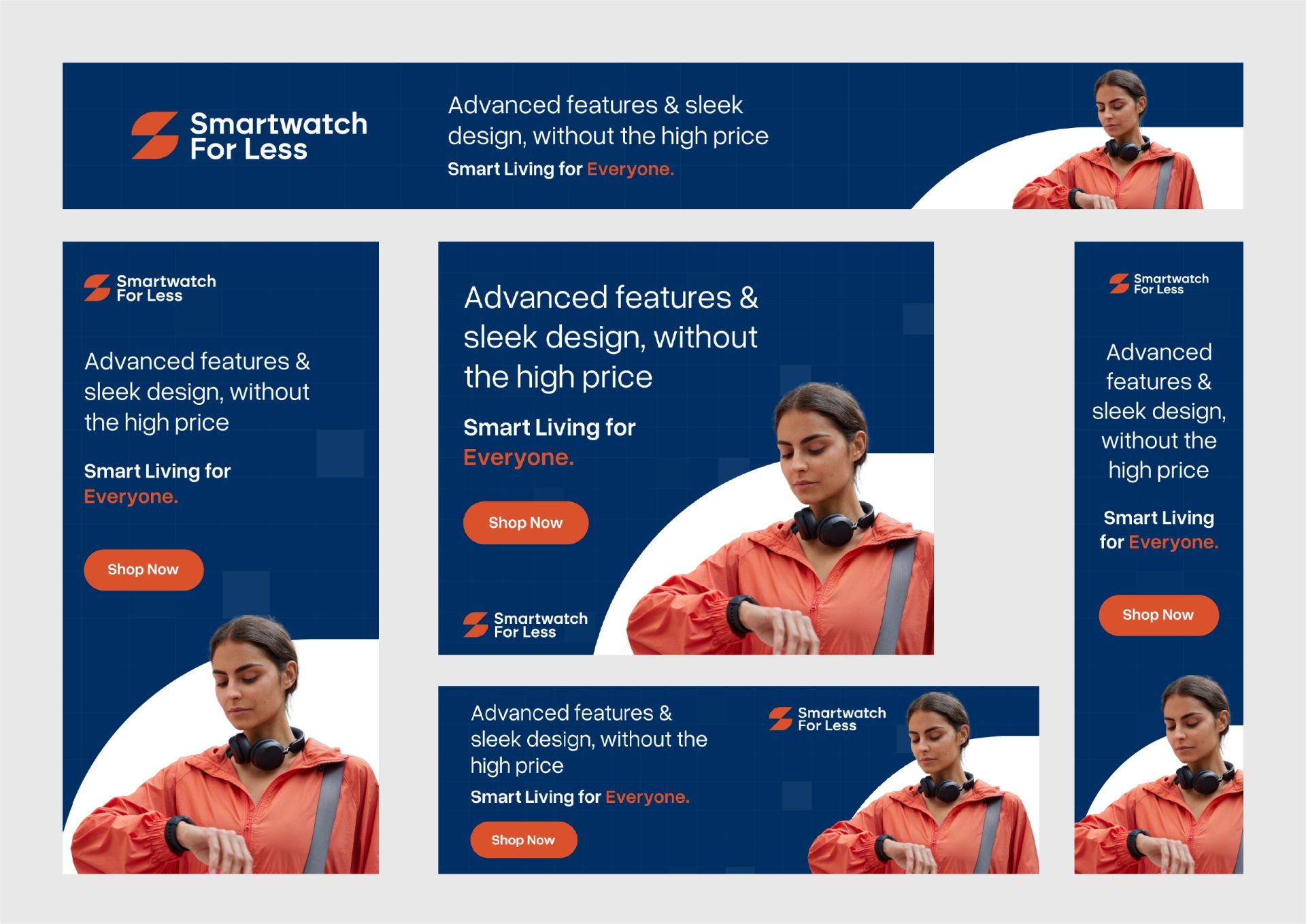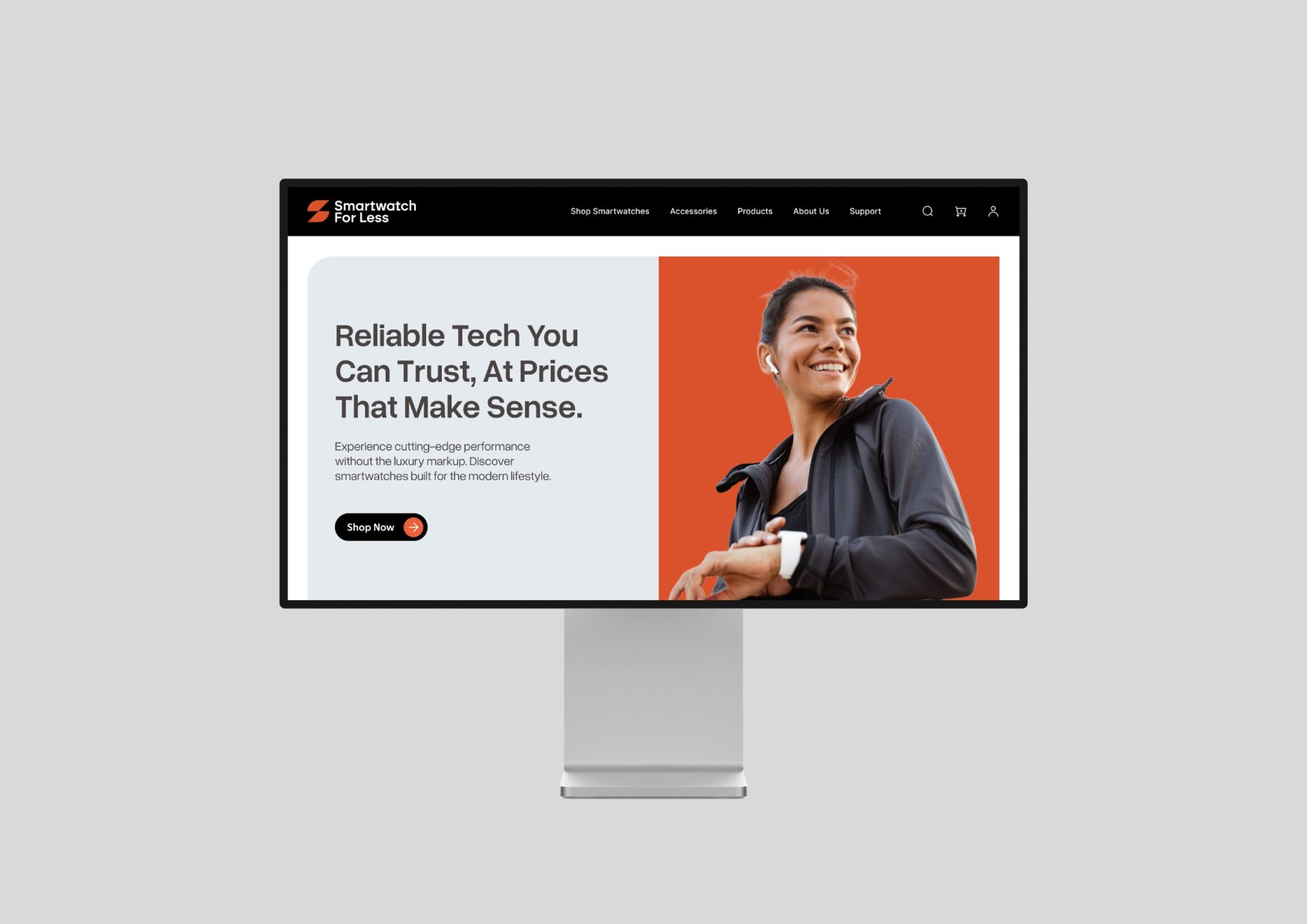 Strategic rebrand of Smartwatch For Less to move the brand out of the “cheap tech” perception created by its name and position it slightly higher on the value spectrum—without losing accessibility. The goal was not luxury, but credible, well-designed smart tech that feels considered, reliable, and worth paying more for.